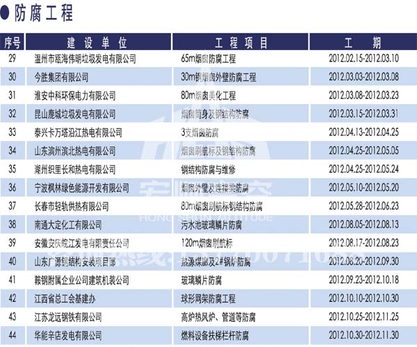 - 宏順建設核心技術 宏順建設專業承接各種煙囪新建,磚煙囪新建,煙囪防腐,煙囪滑膜,煙囪改造,煙囪內壁防腐,煙囪脫硫防腐等工程,有多年的成功經驗...解詳情